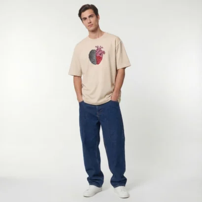 Find the perfect balance between logic and emotion with our Mind & Heart Balance Tee. This oversized T-shirt features a premium embroidered design that fuses half a brain and half a heart – symbolizing the harmony of intellect and passion.