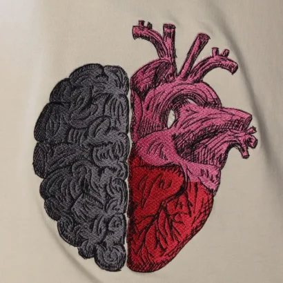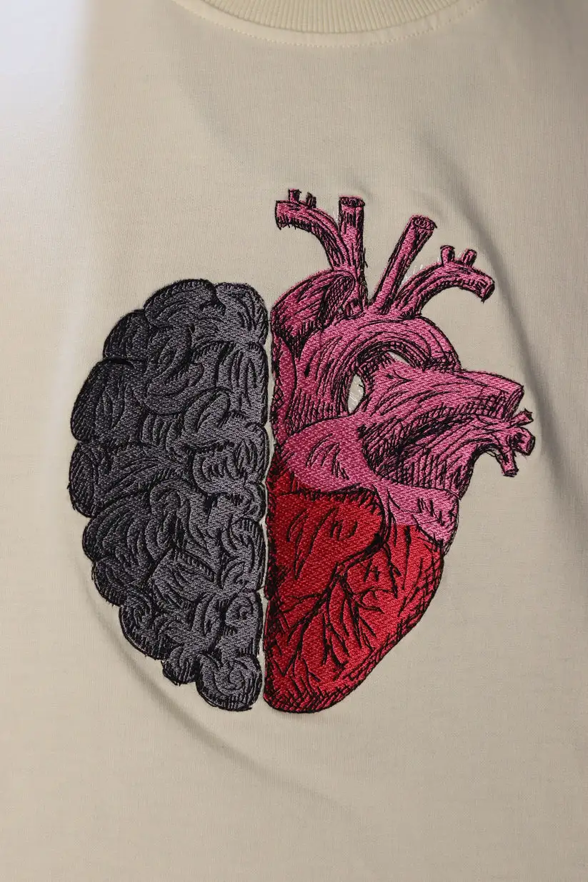 • Intricate embroidered brain & heart artwork