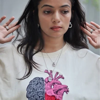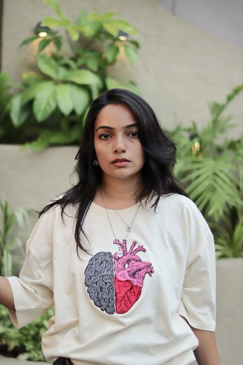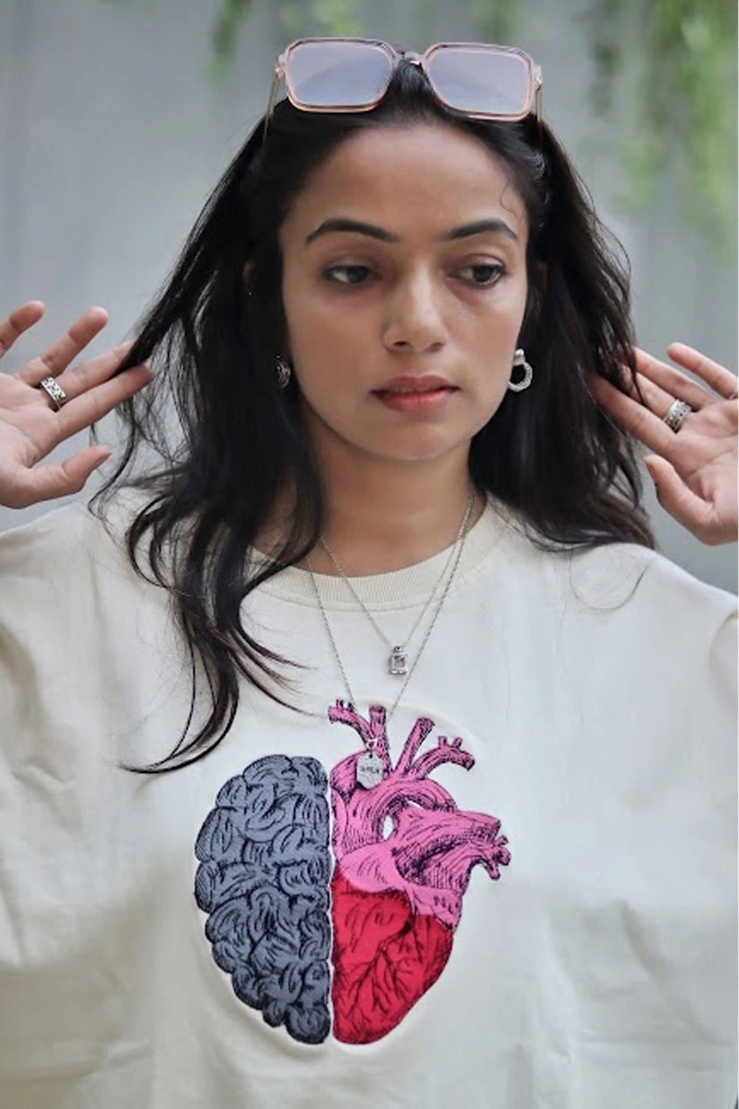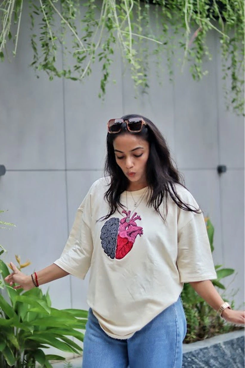 Find the perfect balance between logic and emotion with our Mind & Heart Balance Tee. This oversized T-shirt features a premium embroidered design that fuses half a brain and half a heart – symbolizing the harmony of intellect and passion.