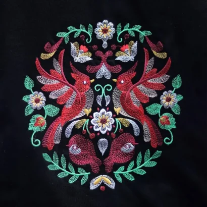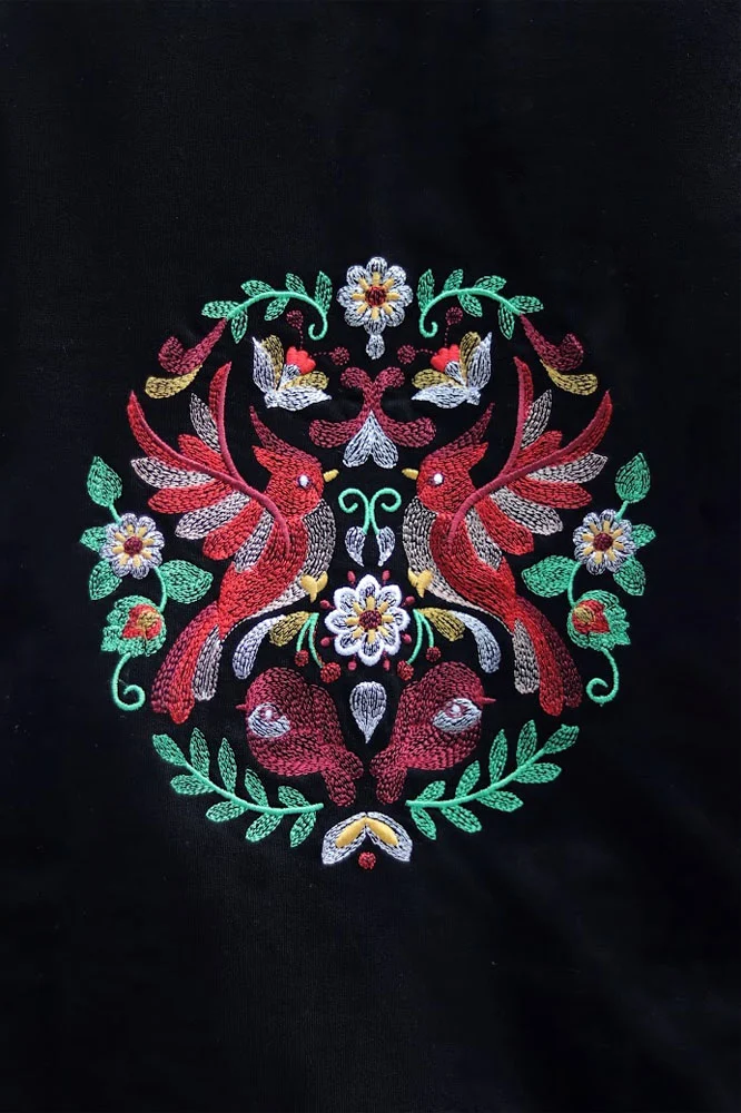 Care: Soft wash only to preserve fabric integrity and embroidery detailing.